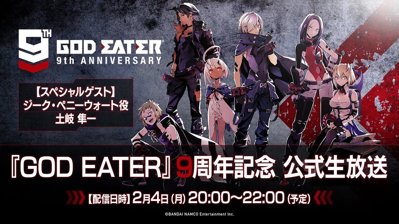 Bandai Namco animera prochainement un live spécial sous forme d’Emission officielle pour le 9ème anniversaire de la série God Eater le 4 Février 2019 de 20h00 à 22h00 JST ‘c’est à dire de 12h à 14h en France).