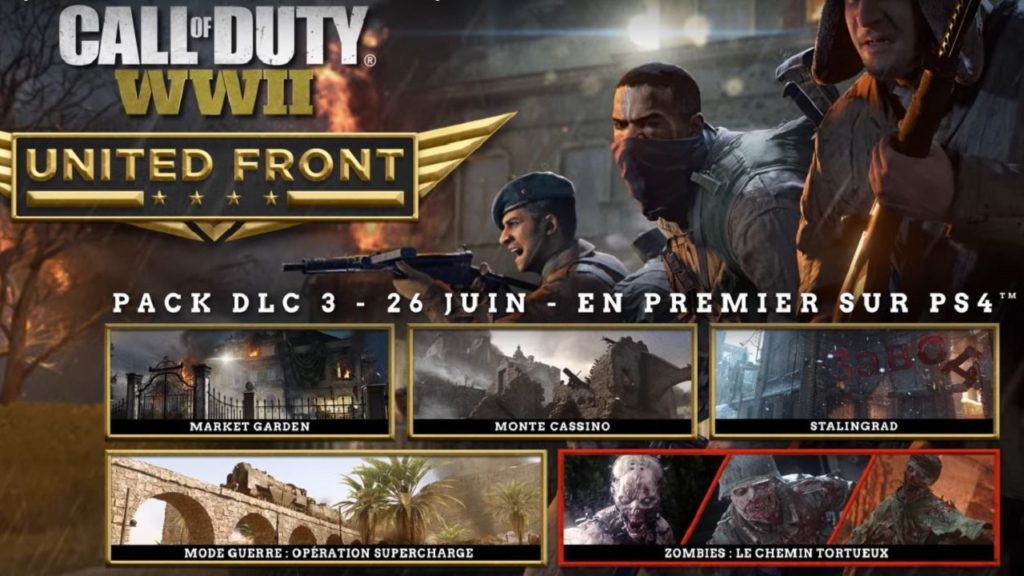 Call of Duty WWII présente dans un nouveau trailer, son troisième DLC appelé « The United Front », ce dernier permettra au jeu de s’étoffer de cinq cartes, disponibles dans des modes différents.