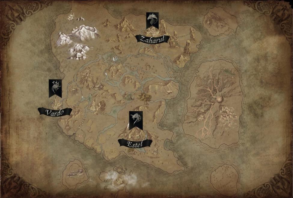 - Zaharul, au nord, connue pour être le foyer souterrain des Nains.