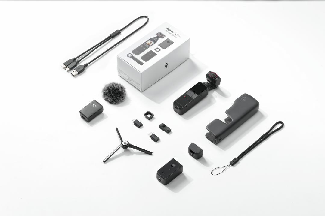 - Le Bundle Créateur DJI Pocket 2 comprend un mini joystick, un support trépied (1/4”), un objectif grand angle, un micro sans fil avec bonnette anti-vent, une poignée multi-usage et un mini trépied, tout ceci au prix de 509 €.