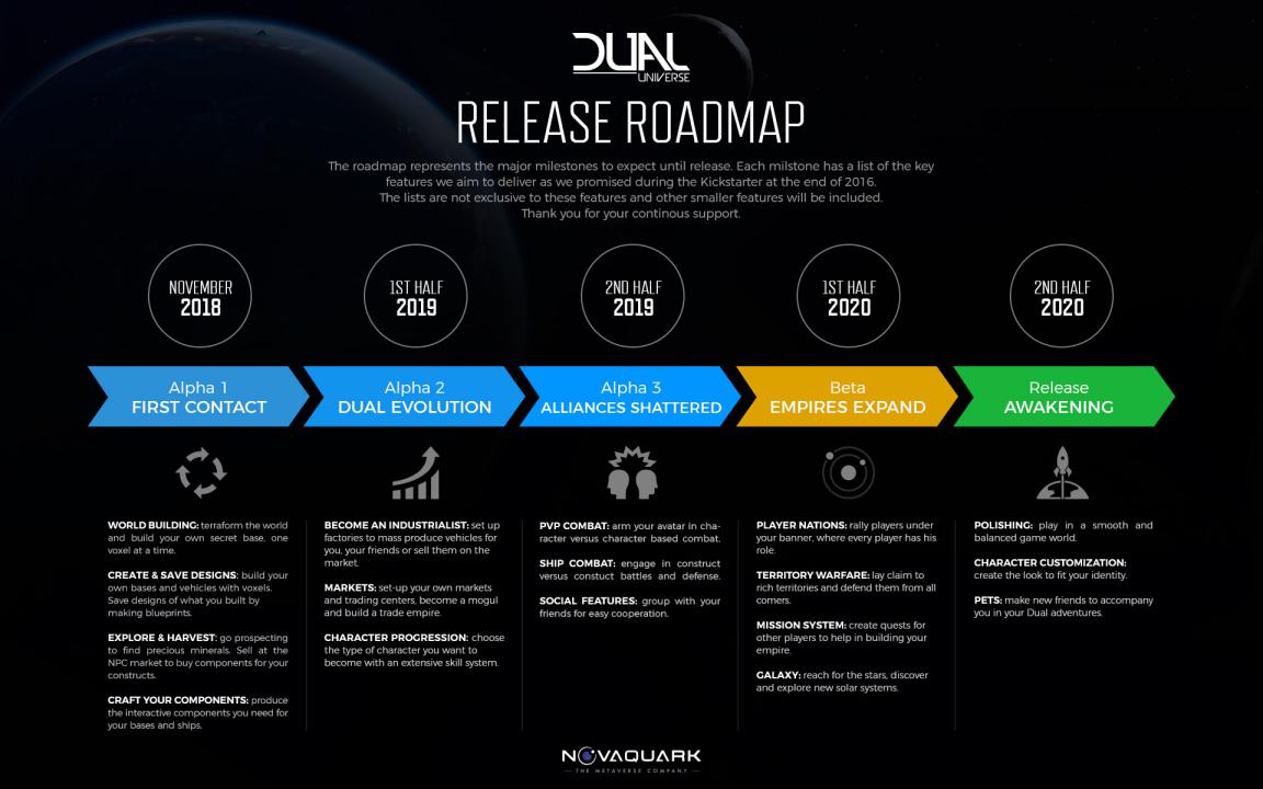 Pour rappel, retrouvez toutes les étapes clés du développement de Dual Universe sur la roadmap disponible via le lien suivant.