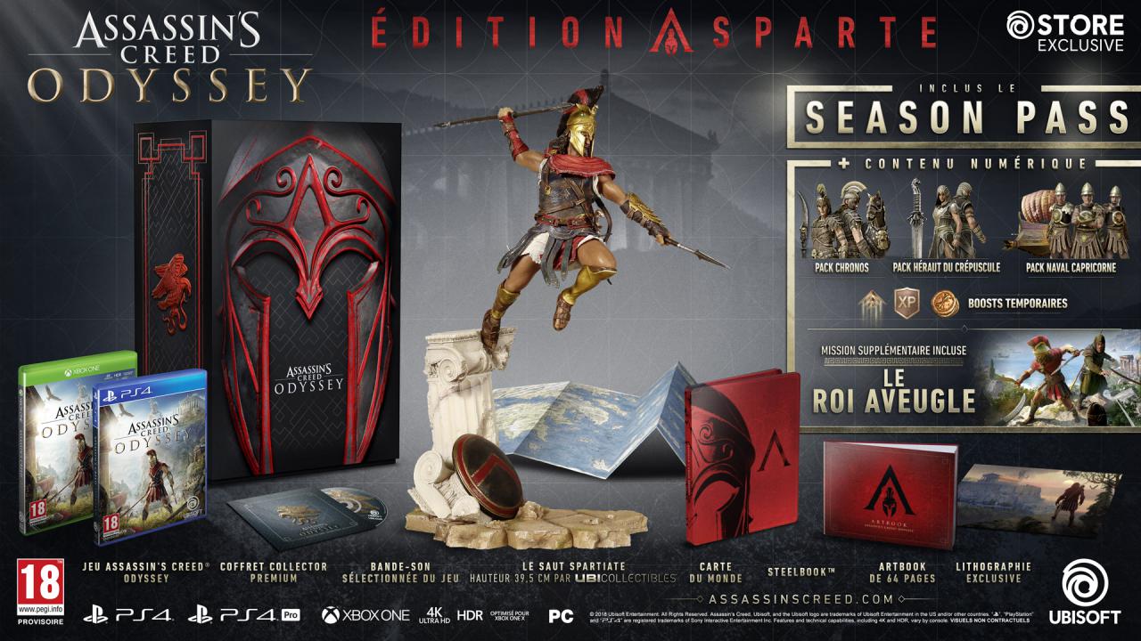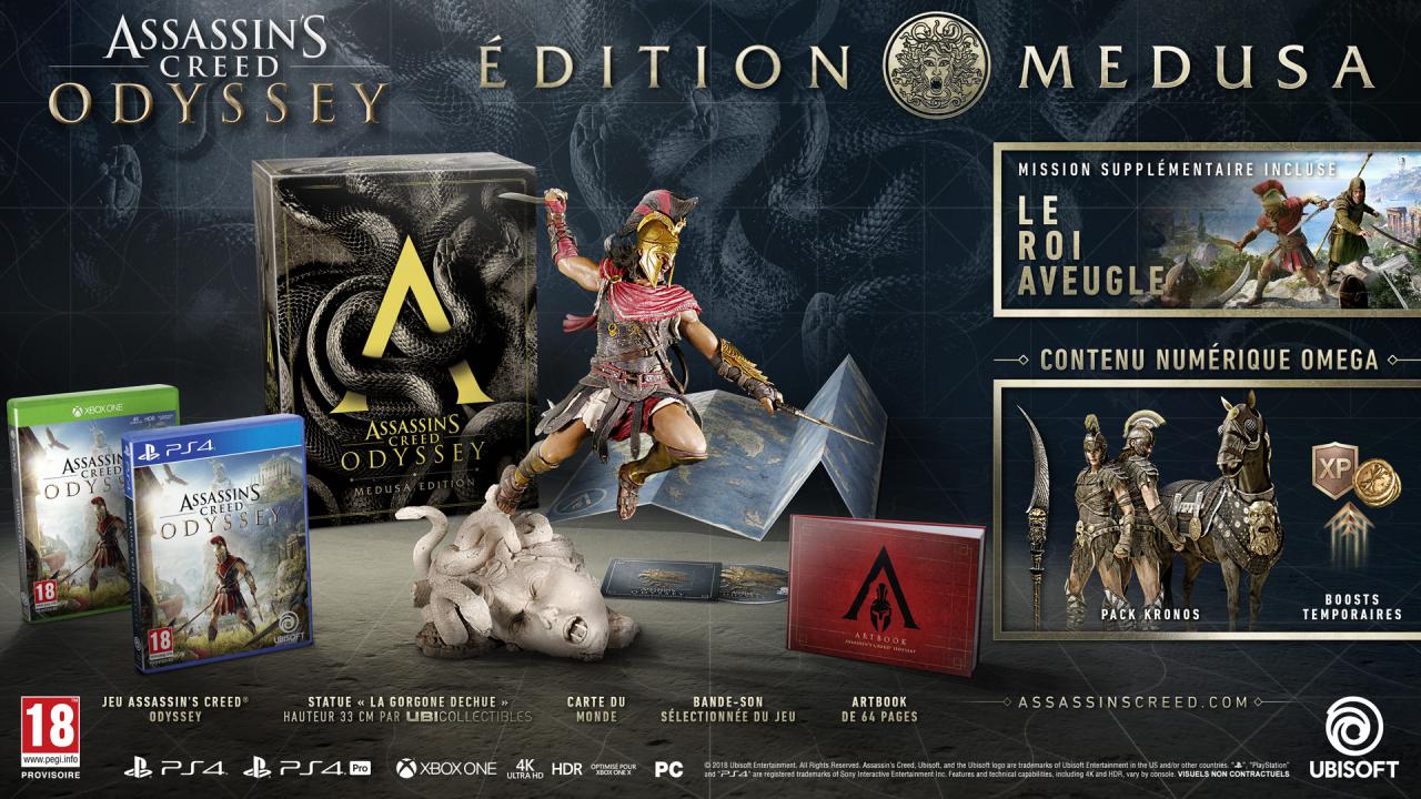 A l’occasion de sa conférence de presse E3 2018, Ubisoft annonce les éditions Collector d’Assassin’s Creed Odyssey dont l’Édition Pantheon, l’Édition Spartan et l’Édition Medusa. Ubisoft dévoile aussi une nouvelle statue, 2 figurines et une réplique Ubicollectibles directement inspirés de l’univers d’Assassin’s Creed Odyssey.