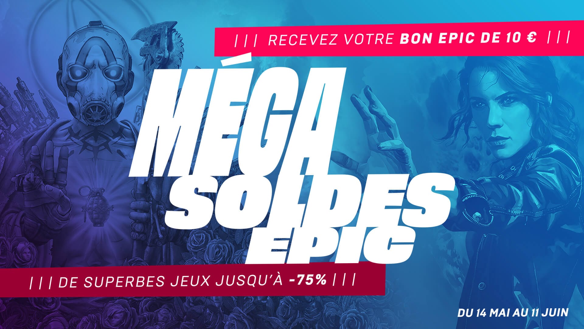 Epic Games est heureux d’annoncer aujourd’hui le retour des Méga Soldes Epic Games sur l’Epic Games Store avec quatre semaines d’offres de jeux gratuits sur certains des plus grands titres du jeu vidéo, un coupon de 10€ émis pour chaque achat (de 14,99€ et plus), et des réductions incroyables sur les titres majeurs !