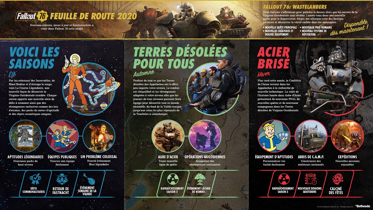 Bethesda Softworks dévoile la feuille de route de Fallout 76 pour l’année 2020. Par ailleurs, le titre sera disponible gratuitement à partir de 18h jusqu’au lundi 18 Mai 2020.
