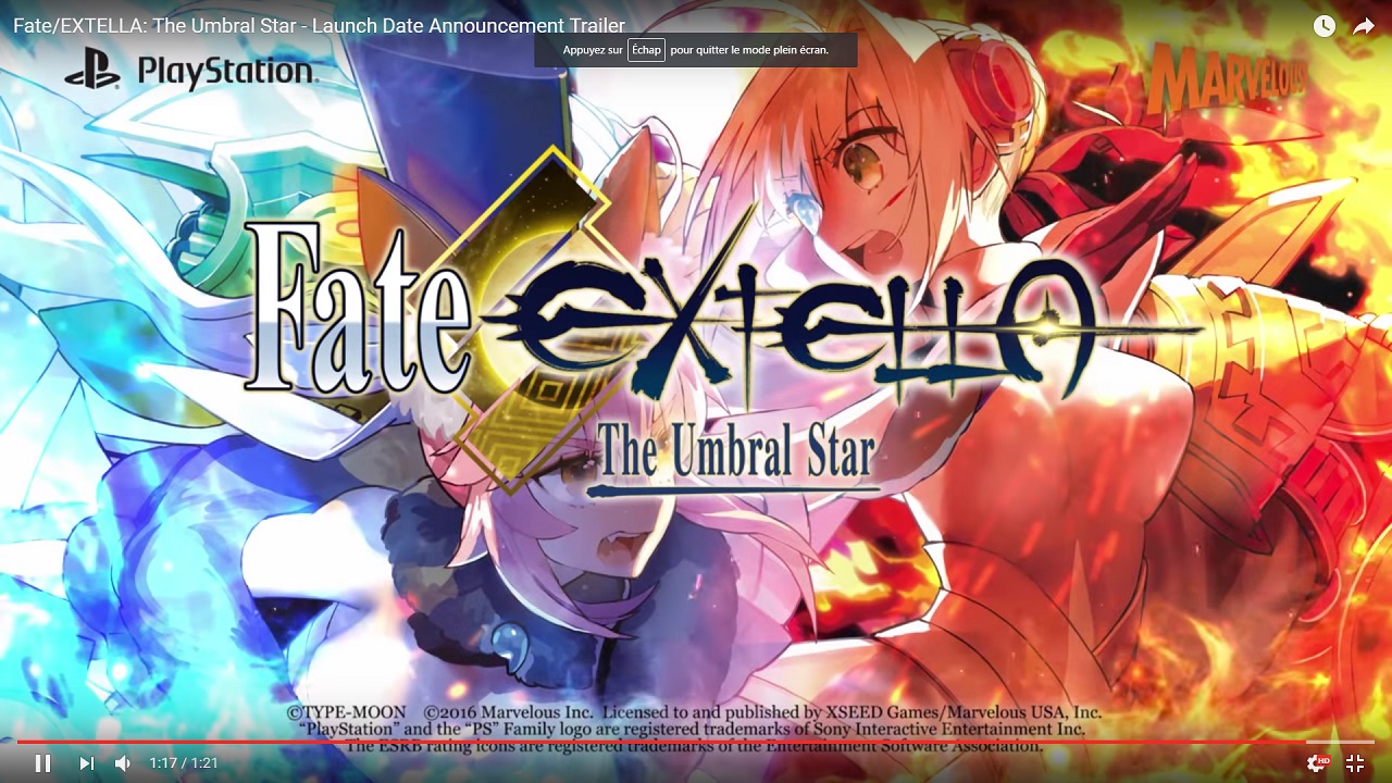 Les développeurs de chez Marvelous Europe viennent d’annoncer la sortie officielle de Fate/Extella: The Umbral Star sur PS Vita et Playstation 4 qui sera le 20 janvier 2017 .