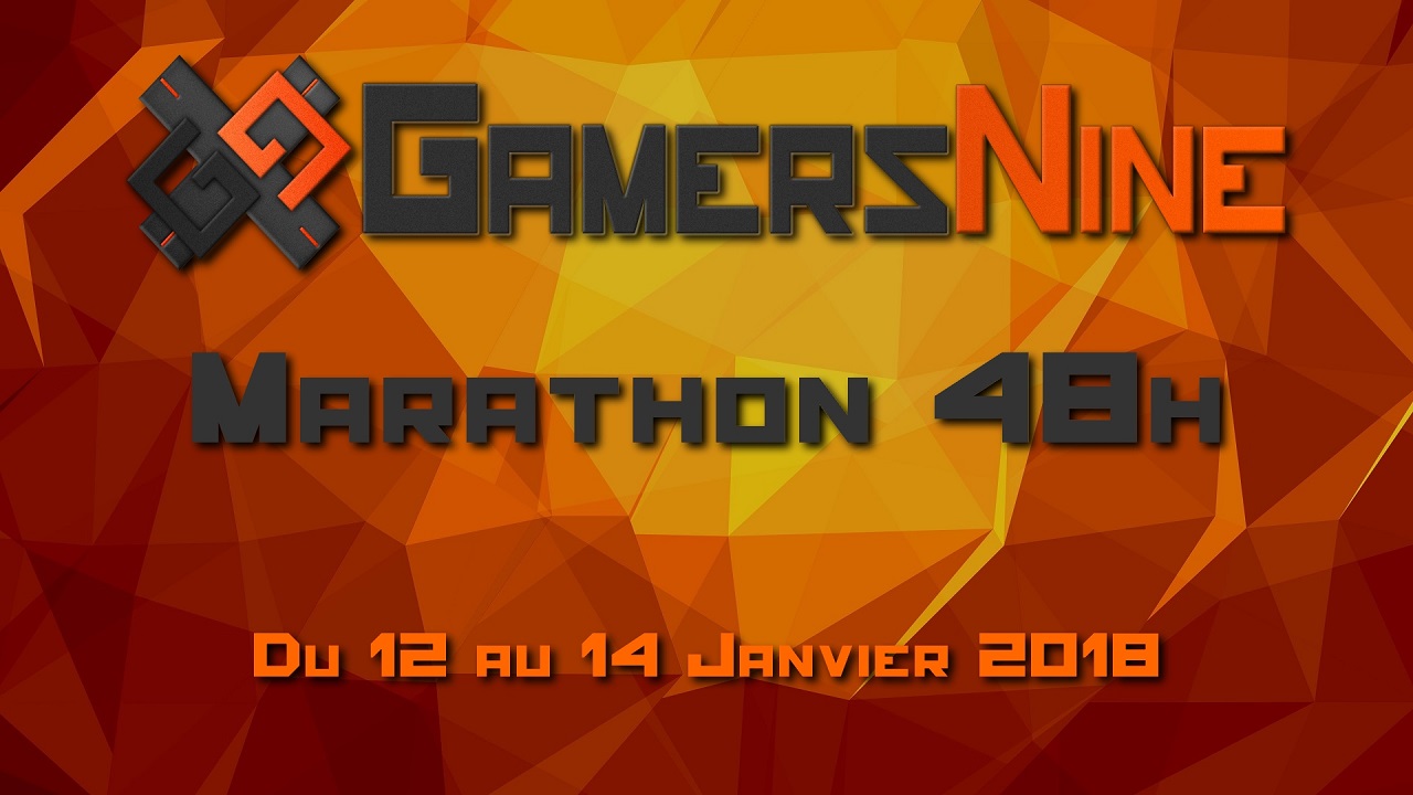 Un marathon de 48h va avoir lieu sur la Web TV GamersNine du Vendredi 12 Janvier 2018 à 8h00 au Dimanche 14 Janvier 2018 à 8h00.