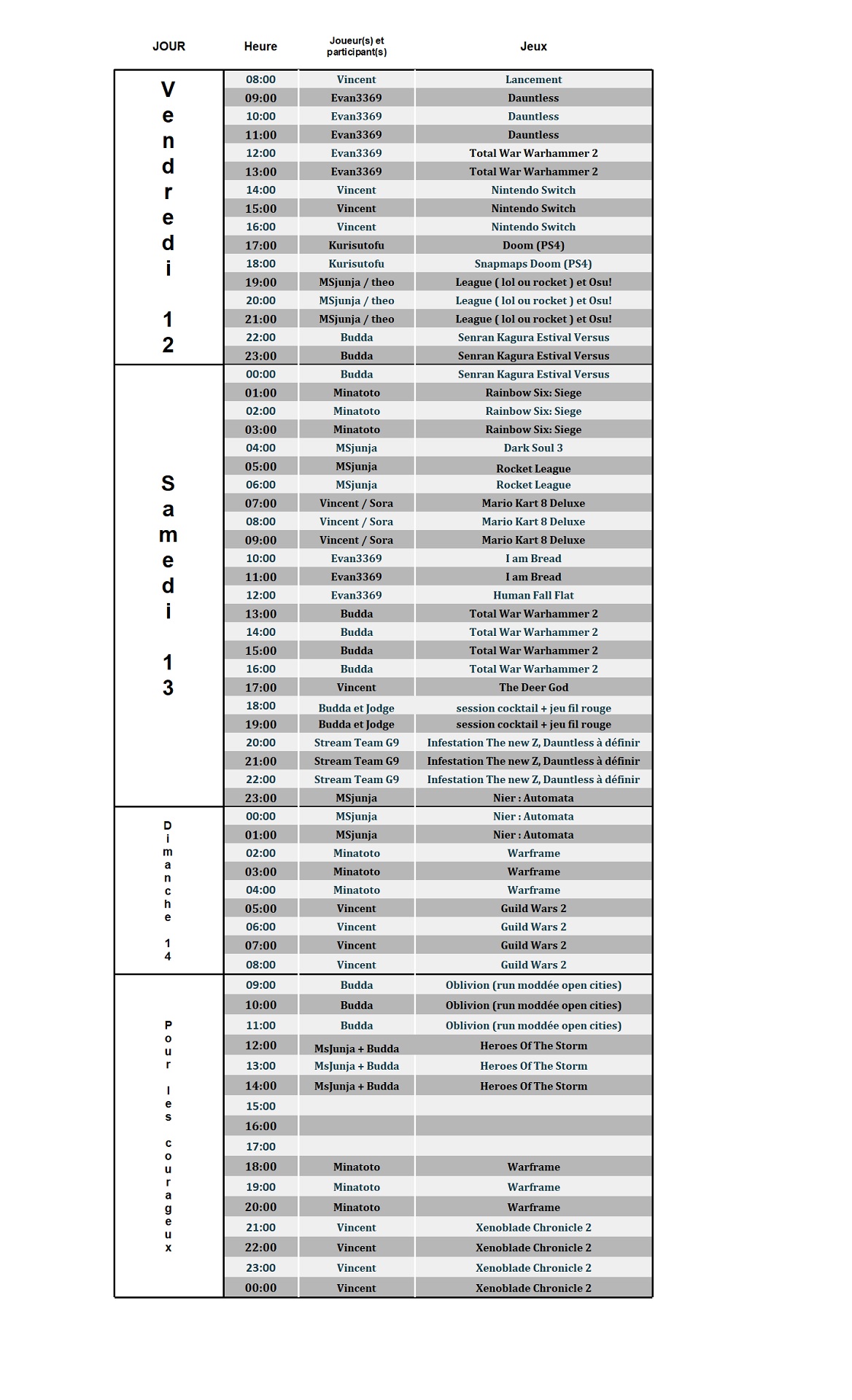 Plusieurs streamer se relaieront du Vendredi 12 Janvier au Dimanche 14 Janvier , afin de vous faire partager de nombreux jeux, allant :
