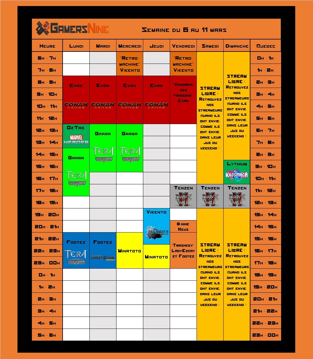 Le site Gamersnine vous propose une nouvelle semaine pleine de nouveautés et de surprises. Mais nous revenons aujourd’hui avec le planning du Stream et les informations de la semaine.