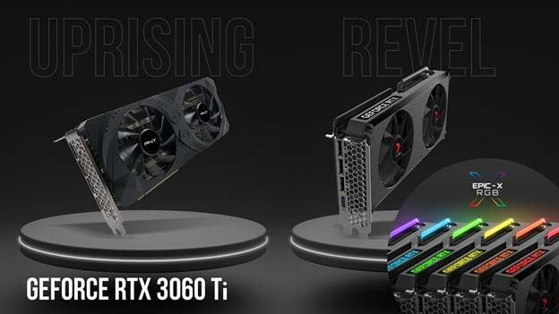 PNY présente deux modèles RTX 3060 Ti : la GeForce RTX 3060 Ti XLR8 Gaming REVEL EPIC-X RGB sous la marque XLR8 Gaming et la GeForce RTX 3060 Ti UPRISING sous la marque PNY, chacune étant dotée de 2 ventilateurs, 8GB GDDR6 de mémoire embarquée, une architecture NVIDIA Ampere et la 2ème génération de NVIDIA RTX, la plateforme de jeu PC la plus puissante au monde pour le ray tracing et l’IA en temps réel. La GeForce RTX 3060 Ti offre un gameplay 1080p et 1440p époustouflant.