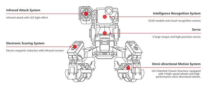 - Une mobilité extrême : Avec son châssis omnidirectionnel, sa vitesse impressionnante et sa tourelle intelligente, vous contrôlez le robot GEIO à 100% !