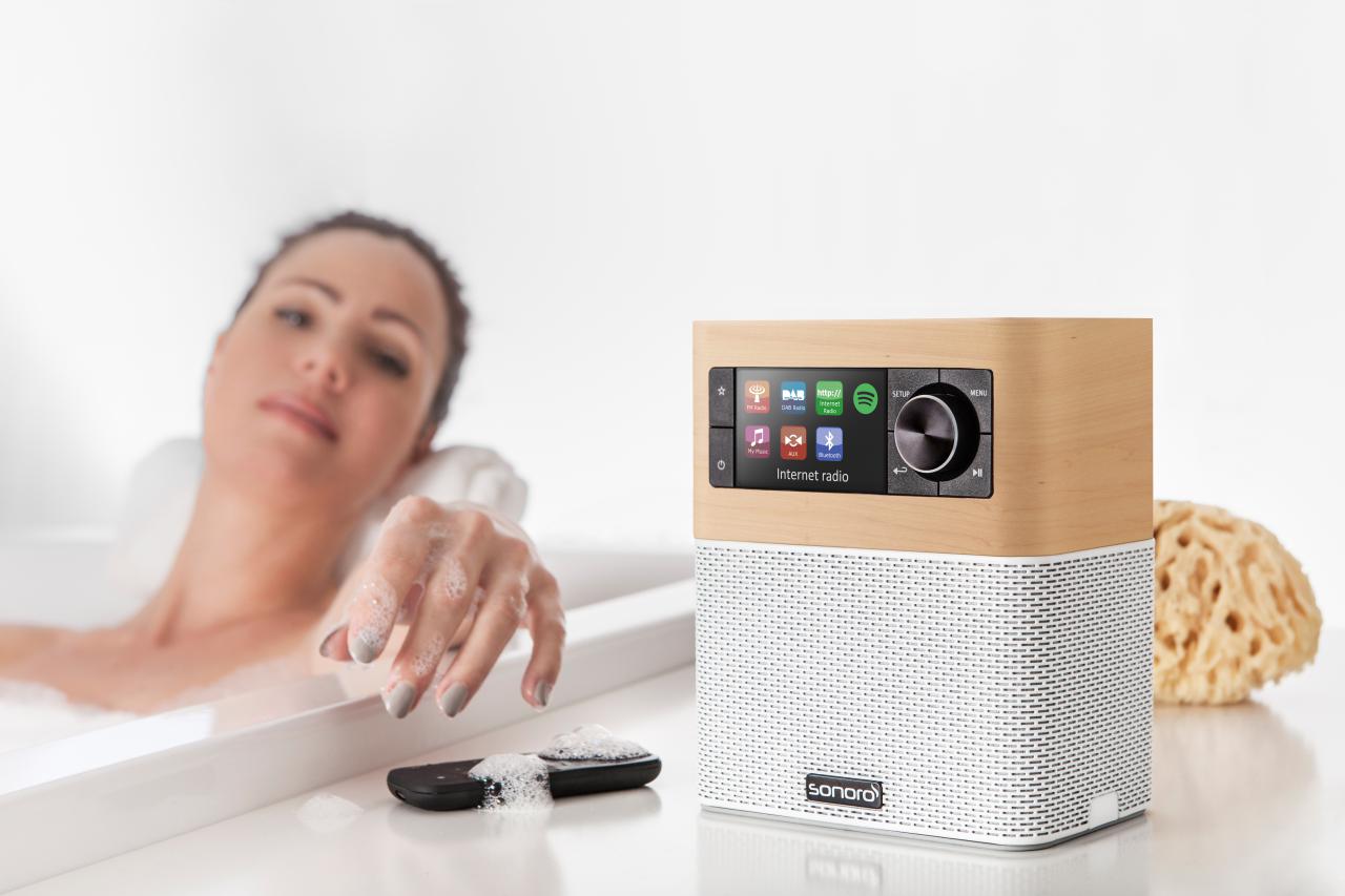 Stream a été spécialement développée pour l´acoustique compliquée des pièces telles que la cuisine ou la salle de bain. Doté d’une télécommande étanche, il sera le compagnon parfait pour se prélasser dans son bain. Il trouvera facilement une place dans notre quotidien, l’occasion de s’offrir un moment de détente ou de partage ou de divertissement.
