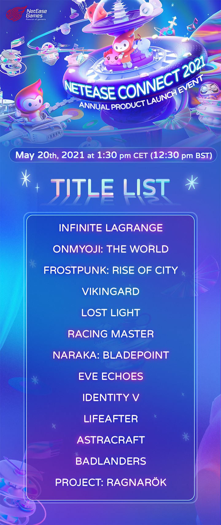 Le programme de l’événement annuel de lancement de produits NetEase Connect 2021 a été révélé aujourd’hui. Lors du stream du 20 mai 2021 à 13h30 CEST, NetEase Games diffusera de toutes nouvelles informations sur les jeux à venir, des nouvelles sur certains de ses produits récemment sortis et des premières mondiales passionnantes de titres totalement nouveaux.