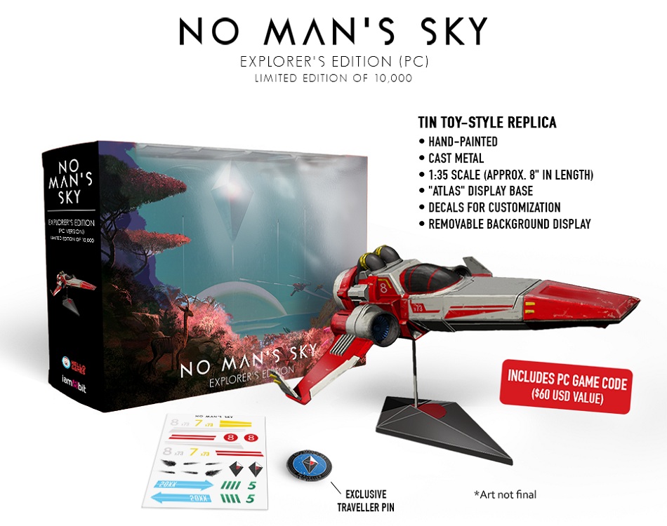 La version PC sera disponible uniquement en téléchargement. Une édition limitée de 10 000 exemplaires intitulée « Explorer’s Edition» comprendra une copie du jeu, une copie métallique du vaisseau et autres goodies. Ce pack est disponible sur le site iam8bit.