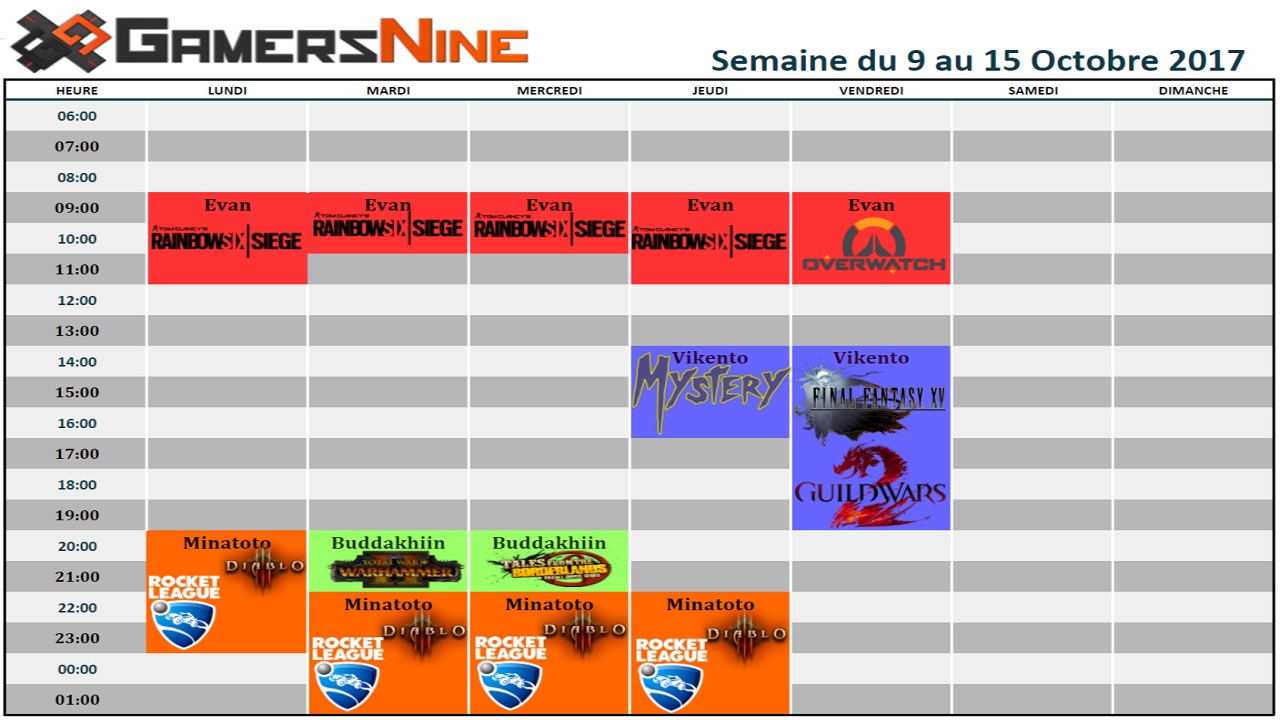 Regardons ensemble le déroulement du planning de la WebTV G-Nine (du 9 au 15 Octobre 2017) :