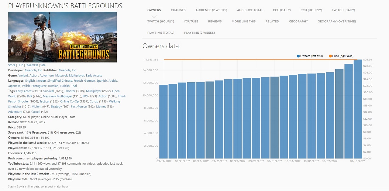 L’annonce de cette estimation fut dévoilée par le site Web SteamSpy, voici la preuve en image.