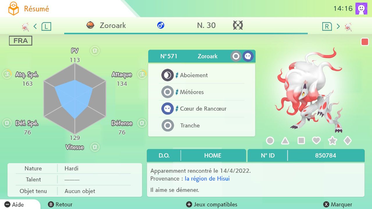 Il est possible de vérifier, entre autres, les niveaux d’effort des Pokémon transférés depuis Légendes Pokémon : Arceus vers Pokémon HOME.