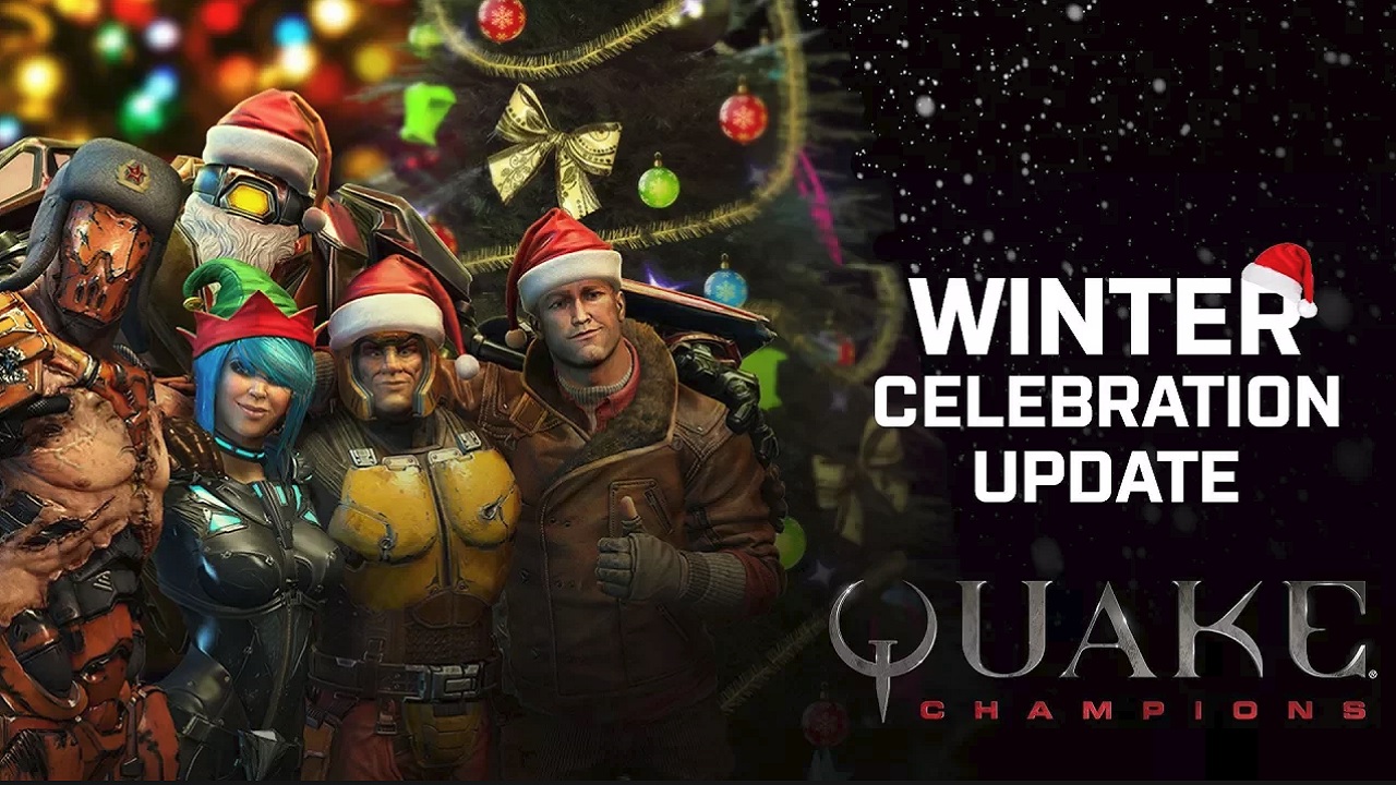 - CÉLÉBRATIONS DE FIN D’ANNÉE : Pour célébrer ensemble les fêtes de fin d’année, Quake Champions intègre dans sa mise à jour des objets thématiques spéciaux, dont des shaders animés pour les Champions et des shaders festifs pour les armes, des décorations de fin d’année dans Burial Chamber et Corrupted Keep, des objets de tête décoratifs pour les Champions, et des icônes de profil et des plaques nominatives en édition limitée. Les joueurs peuvent jouer gratuitement sur les cartes des fêtes pour une durée limitée. Tous les objets festifs des champions et les armes peuvent être obtenus dans les sacs à dos, coffres et reliquaires pour une durée limitée.