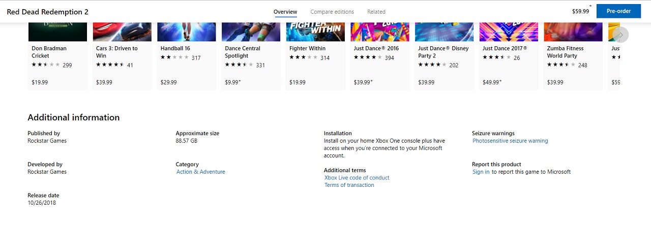 Il y a environ un mois, on apprenait que la Playstation 4 devait disposer d’une capacité d’installation de 105 Go, aujourd’hui, il s’agit de la Xbox One qui vient de recevoir la nouvelle concernant l’espace de stockage. Récemment, la page du produit Red Dead Redemption 2 a été mise à jour dans la boutique Xbox, où l’on peut voir que le jeu occupera environ 88,57 Go pour l’installation dans le stockage de la console.