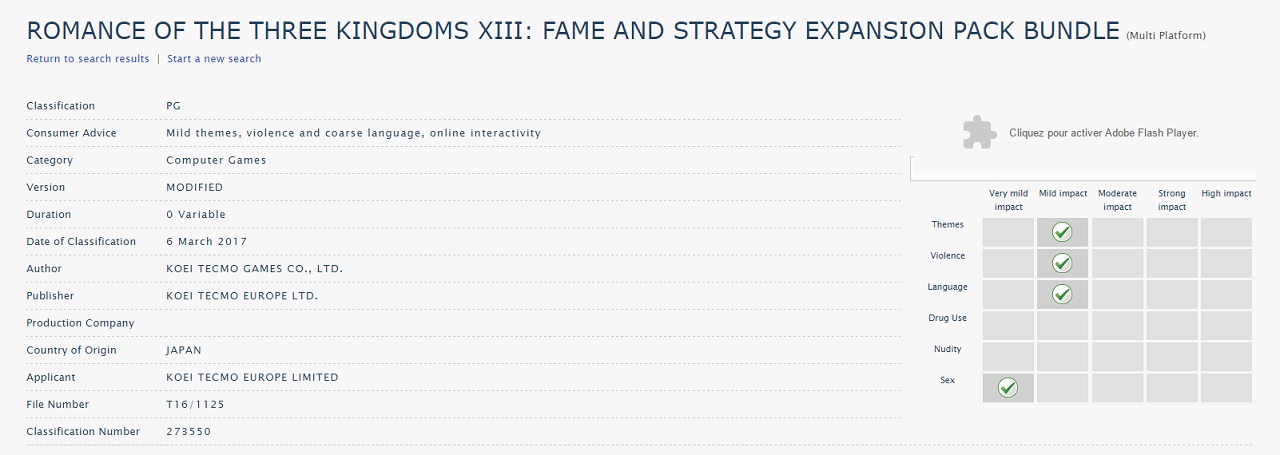 Le jeu est intitulé Romance of the Three Kingdoms XIII: Fame and Strategy Expansion Pack Bundle.