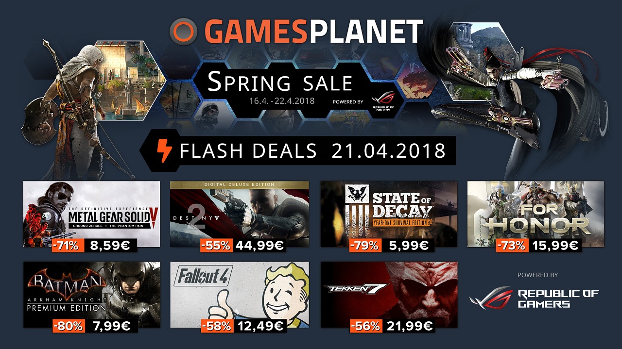 Du 16 au 22 Avril 2018, Gamesplanet vous propose des soldes sur une ribambelle de jeux. Chaque jour, la plateforme met en avant une sélection de jeux avec des réductions plus importantes les unes que les autres. Vous pourrez ainsi retrouver dans cet article une mise à jour à chaque fois des nouvelles promotions :