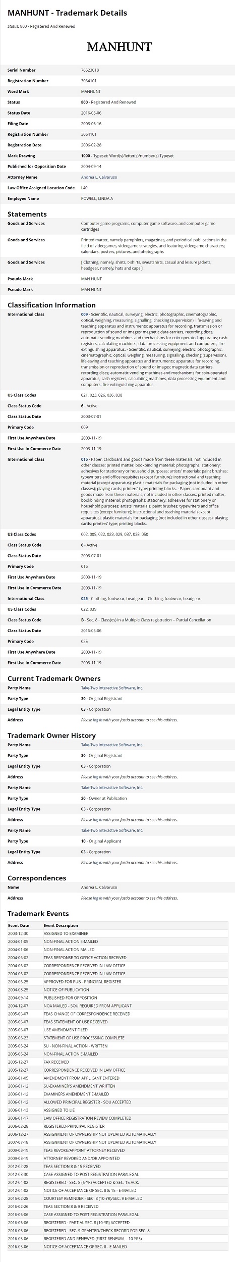 Ainsi, nous avons découvert que Take-Two Interactive, la société en charge de la distribution des titres Rockstar, vient de renouveler les droits sur la marque Manhunt.