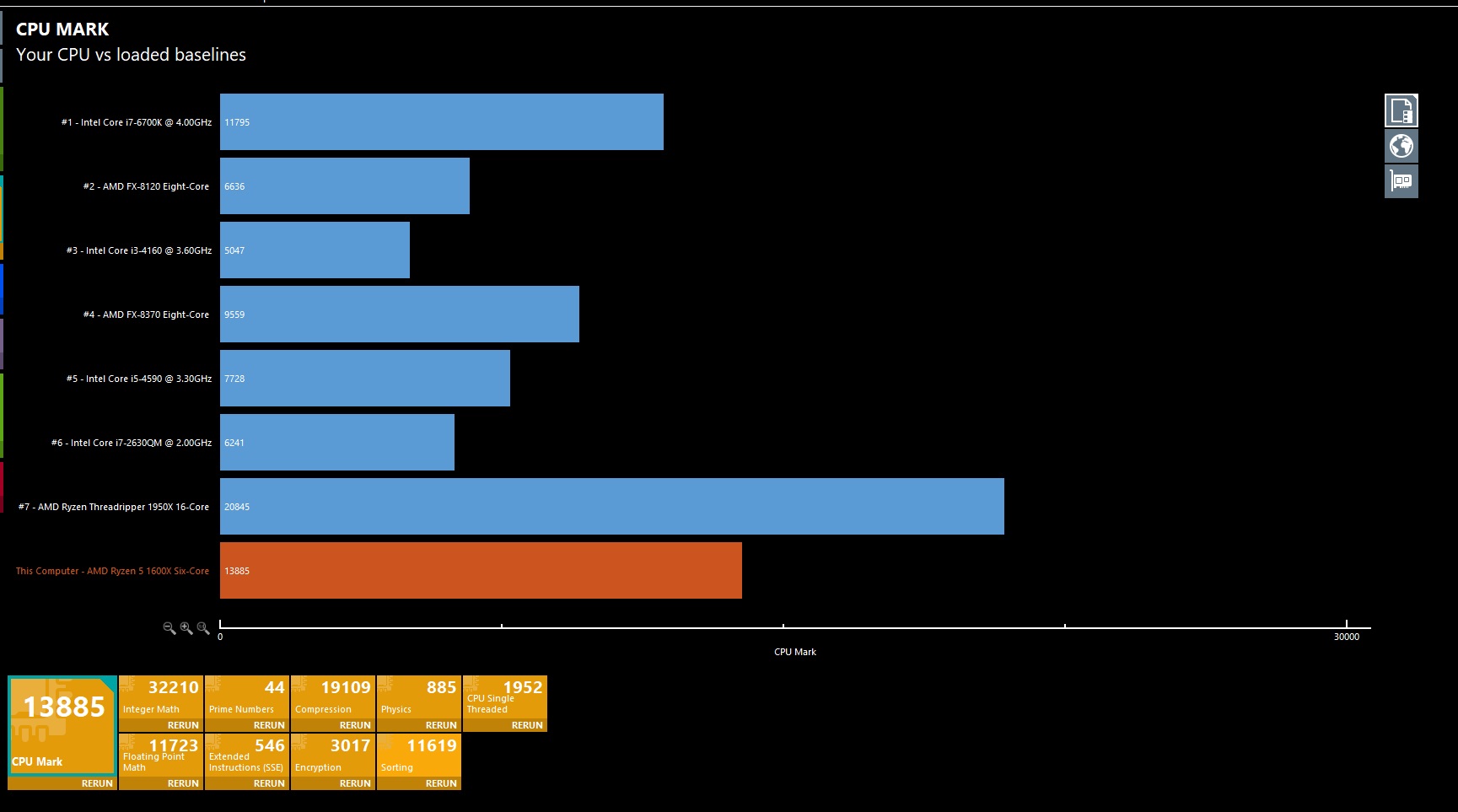 - Voici les résultats de Passmark Performance Test : “PassMark PerformanceTest permet de faire des tests de vitesse, d’analyses comparatives rapides et faciles à utiliser. Le logiciel permet d’évaluer objectivement un PC en utilisant une variété de tests et de comparer les résultats à d’autres ordinateurs.