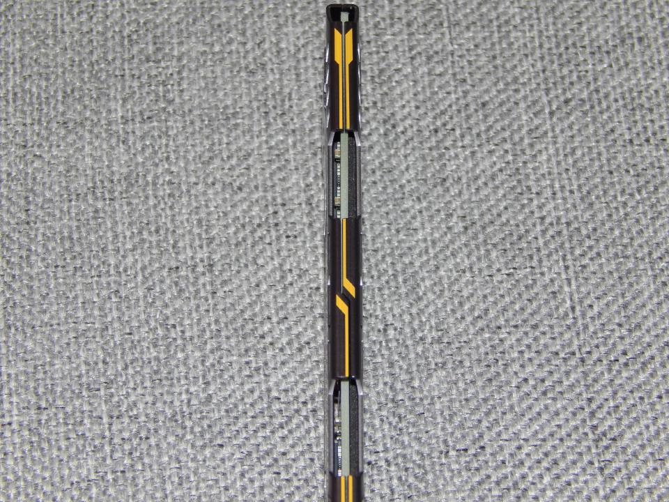 Vous pouvez voir que les répartiteurs de chaleur ne se touchent pas.Comme vous pouvez le voir, il y a deux bandes jaunes sur le dessus du module de mémoire ce qui, à mon avis, ajoute une touche agréable à l’esthétique.
