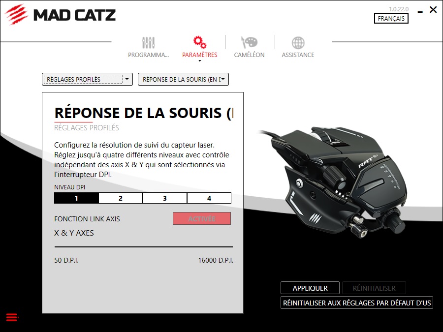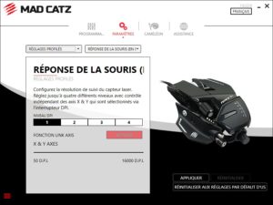 Chose assez surprenante que nous venons de remarquer, car nous n’avions jamais eu de souris Mad Catz à tester auparavant, chaque souris possède son propre logiciel.
