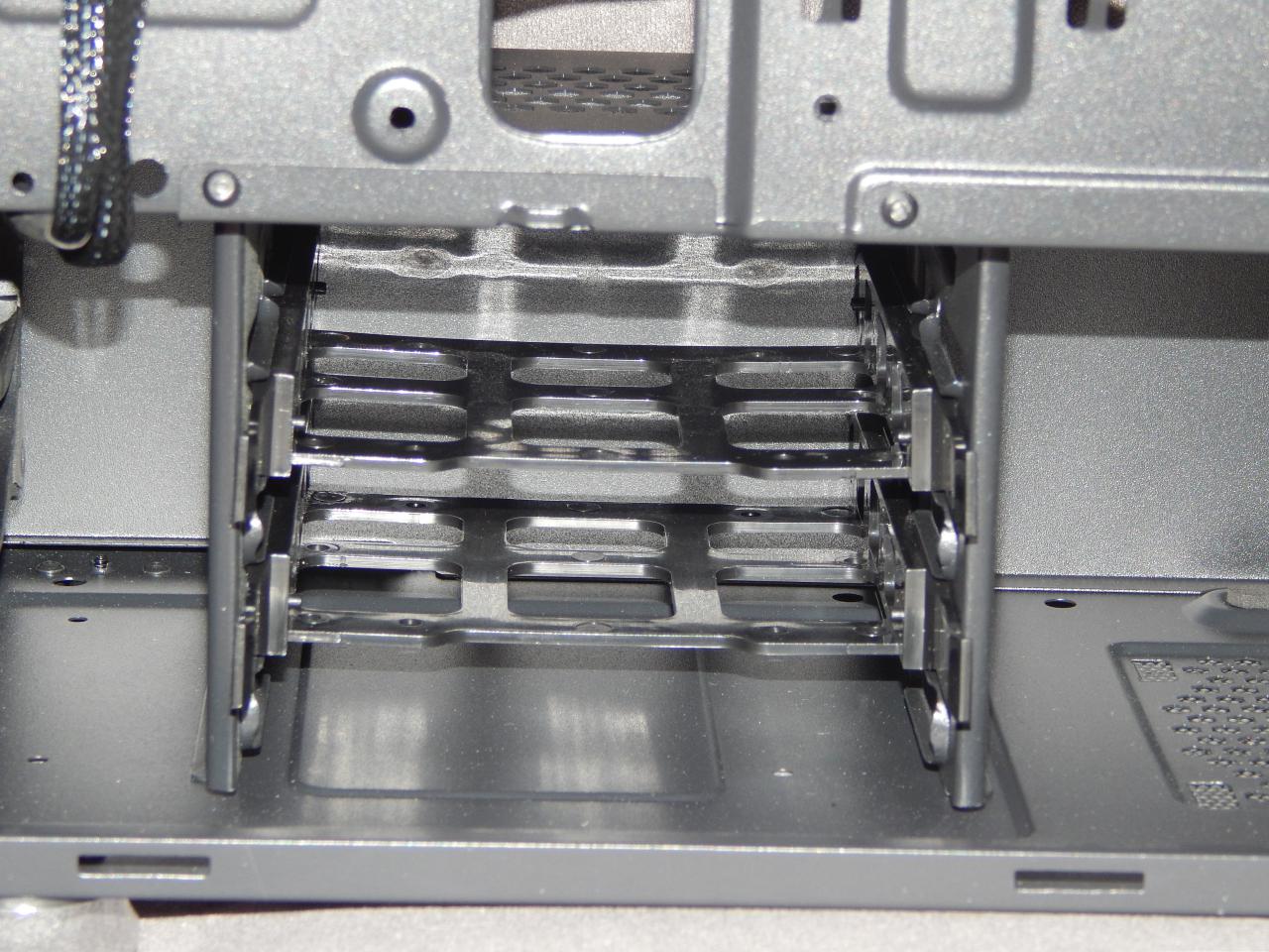 - Dans le fond, nous retrouvons une plaque métallique percée pour le passage des câbles et deux emplacements pour disque SSD.