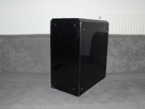 Comme nous vous l’avons annoncé ci-dessus, les parois latérales sont en verre trempé et maintenues par 4 vis sur chaque face.