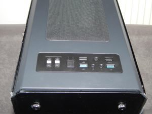 Sur la façade avant rien de bien particulier comme vous pouvez l’espérer, il s’agit d’un boîtier entièrement vitré ce qui exclus l’emplacement de lecteur de disque.