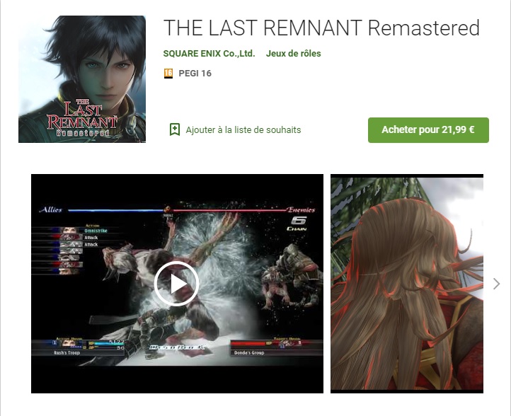 Ainsi, à travers une annonce totalement surprise, la société japonaise a confirmé que The Last Remnant Remastered est désormais disponible sur les appareils Android et iOS .
