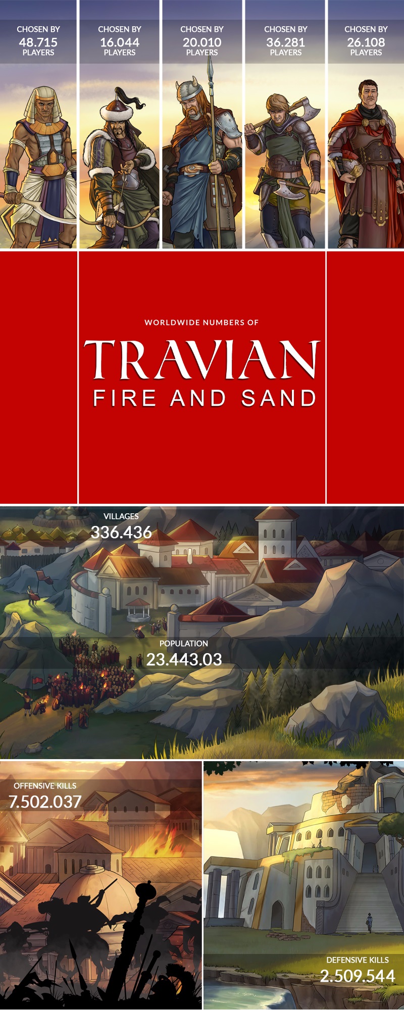 Fiers du succès de leur jeu, Travian Games a publié une infographie que vous pouvez retrouver ci-dessous à la fin de l’article, ceci étant une illustration des exploits des joueurs depuis la sortie de la nouvelle extension.
